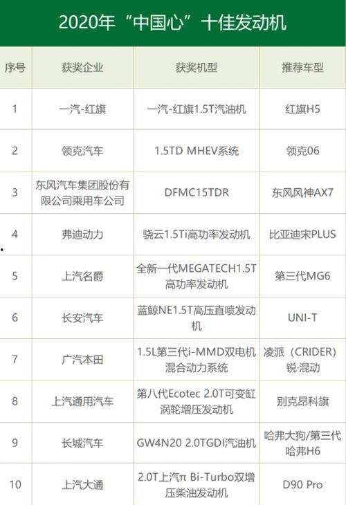 根据各大汽车媒体和专业机构的评测,以下是国产十佳发动机排名榜: